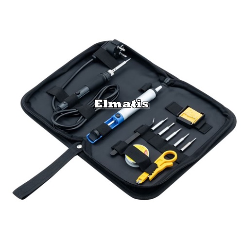 Opis: SET ZA LEMLJENJE Napon: 230V Snaga: 25-60W (5 nastavaka) U kompletu: Lemilo, pumpica, tinol(1mm, 10g.), pinceta spužvica,nastavci.