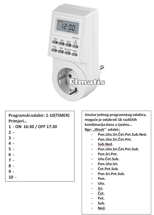 Unutar jednog ON/OFF programa ima mogućnost odabira jednog od 16 različitih već gotovih